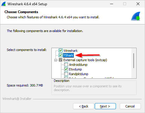 Download and install Wireshark, if necessary. Be sure to install the TShark component: