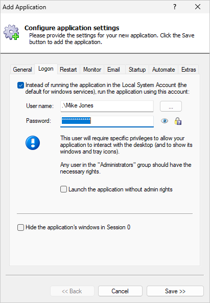 Note: Running in a user account is not strictly required. In truth, TShark should work fine from the System account where Windows Services run.