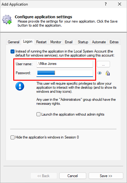 For more ideas, see Getting the most from your AlwaysUp Windows Services. Frequently Asked QuestionsCan any .EXE run as a Windows Service?Many can, but not every executable behaves well in the background. Programs that require constant user interaction may need extra configuration or may not be suitable. AlwaysUp is designed to make this process much easier and includes tools to improve compatibility. Will the Service start before I log in?Yes. That's one of the key benefits of using a Windows Service. Your application can start during boot, before any user signs in. What if my application crashes?AlwaysUp can detect the failure and restart the application automatically. You can also configure email alerts, resource monitoring, scheduled restarts and custom sanity checks. My application works manually but not as a Service. Why?The most common causes are the wrong Windows account, the wrong working directory, missing permissions, or hidden dialog boxes waiting for input. Can I run multiple instances of the same program?Yes. In many cases, you can create multiple AlwaysUp entries with different names, arguments, ports, or working folders. Why choose AlwaysUp?AlwaysUp does more than just launch your application. It helps you keep that application healthy over time. To learn more about the underlying architecture, visit How AlwaysUp Works. For answers to specific questions, see the AlwaysUp FAQ. Ready to run your application as a Windows Service?Download the free 30-day trial of AlwaysUp and start your application at boot, keep it running in the background, and restart it automatically if it stops. Looking for a guide for a specific app? Browse our full library of AlwaysUp application tutorials. |