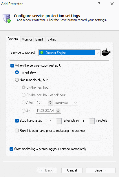- Email: Notifications are sent whenever a Windows Service fails and has to be restarted.
